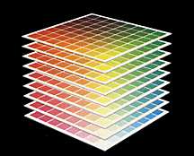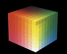 Auch aus den sekundären Grundfarben kann man einen dreidimensionalen Farbwürfel bilden, der - von der entgegengesetzten Seite betrachtet - exakt dem RGB-Würfel entspricht. Für den praktischen Gebrauch wird dieser Würfel gewissermasen in Scheiben geschnitten und bildet so eine Farbtabelle für Drucker und Lithographen. Auf jeder Tabellenseite sind die Grundfarben Gelb, Magenta und Cyan meist in 10%-Schritten kombiniert, wobei sich der Farbanteil der Farbe Gelb von Seite zu Seite steigert.