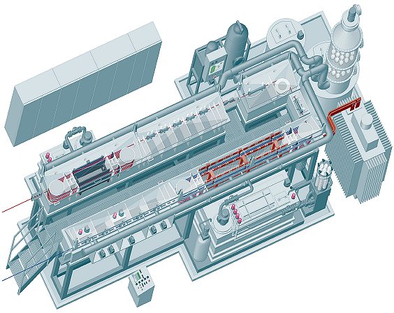 Die Anlage, in der ein dünner Kupferdraht mit einer hauchdünnen Schicht aus z.B. Zinn überzogen wird, sollte auf einer Messewand und im Prospekt als Übersicht dargestellt werden. Der Weg des Drahtes durch die verschiedenen Behandlungstanks sollte nachvollziehbar sein.