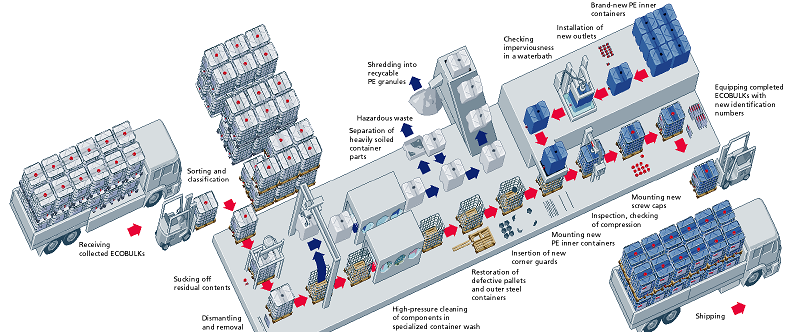 Industriefässer der Firma Schütz werden weltweit zur Wiederaufarbeitung zurückgeholt.