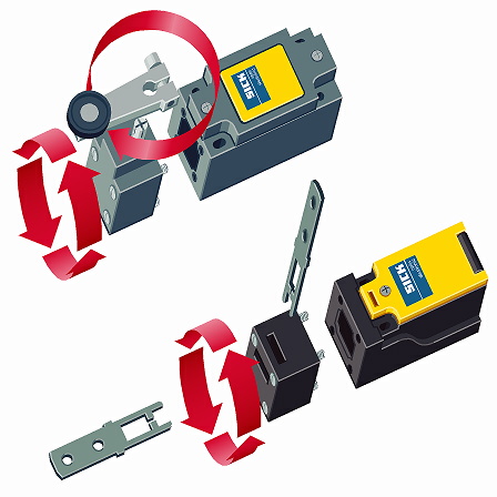 Produktdarstellungen und Anwendungsbeispiele von Schaltern und Sensoren zur Absicherung von industriellen Fertigungsanlagen.