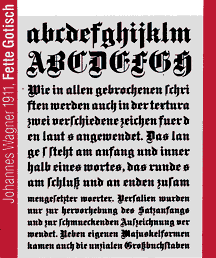 Die gotische Schrift ist eng und hochstrebend. Alle Rundungen der Kleinbuchstaben sind konsequent gebrochen. Die Serifen werden zu rauten- oder wüdelförmigen An- und Abstrichen.