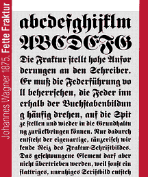 Während die italienischen und französischen Drucker die Renaissance-Antiqua in fast ganz Europa etablierten, überlebte in Deutschland der Einfluß der gotischen Schrift, wie sie bereits Gutenberg benutzt hatte. Die eigentümlich gebrochenen Formen wurden vielfach abgewandelt und den Strömungen der Zeit angepaßt.
