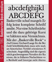 Seine Zeitgenossen betrachteten John Baskerville als einen verschrobenen Dilettanten. Er war launenhaft, eitel und lehnte alles Herkömmliche ab. Seine Schriftentwürfe waren für den damaligen Geschmack zu mager und zu zart, die Kontraste in den Strichstärken erschienen zu stark ausgeprägt.