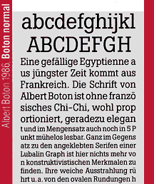 Entstanden waren die Serifenbetonten Antiquas (die seither unter dem Oberbegriff "Egyptienne" laufen), aus dem Wunsch heraus, Botschaften werbewirksamer zu visualisieren. Schildermaler verbreiterten und verzierten die Serifen bis ins Groteske. Auch im Satz reichten die fetten Auszeichnungsschriften nicht mehr aus. 1820 bot William Thorowgood eine erste Egyptienne im Bleisatz an.