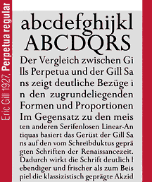 Gill war ein Anhänger der Handwerkskunst und Gegner jeder Mechanisierung, in der er ein gefährliches Potential sah: "Maschinen können praktisch alles. Die Frage ist aber nicht, was sie machen können, sondern was sie machen sollen." Daß trotz dieser Ansicht seine Schriften von Maschinen produziert und erfolgreich vermarktet wurden, ist wohl allein auf die Überredungskünste Morisons zurückzuführen. Die "Perpetua" wäre wohl sonst nur in Holz oder Stein geschnitten worden. Die nach seiner Tochter benannte "Joanna" schuf Gill ursprünglich für seine 1928 gegründete Handpresse und sollte nur für limitierte Drucke eingesetzt werden.
