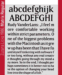 Als 1984 der Macintosh auf den Markt kam, erkannte VanderLans sofort, daß dieser Computer die Designwelt auf den Kopf stellen würde. Von nun an bildete dieses Thema den Schwerpunkt von Emigre. Während er den Großteil des Magazins alleine schrieb, entdeckte seine Frau Zuzana Licko, daß sich der Mac hervorragend dazu eignete, eigene Schriften zu den jeweiligen Artikeln zu gestalten. In zunehmendem Maße bestimmten ihre Schriften das Erscheinungsbild von Emigre. Schon bald kamen Leseranfragen, wo diese Schriften erhältlich seien. Zuzana Licko war auf einen neuen Marktgestoßen, denn die Fonts konnten problemlos auf Disketten kopiert und verkauft werden. Inzwischen bietet "Emigre Graphics" über achtzig Schriften verschiedener Designer an.