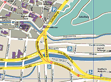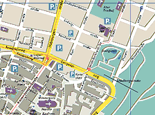 Für den Einsatz in Fremdenverkehrsbroschüren und Hotelführern der Stadt Freiburg zeichnete ich diese Stadtpläne.