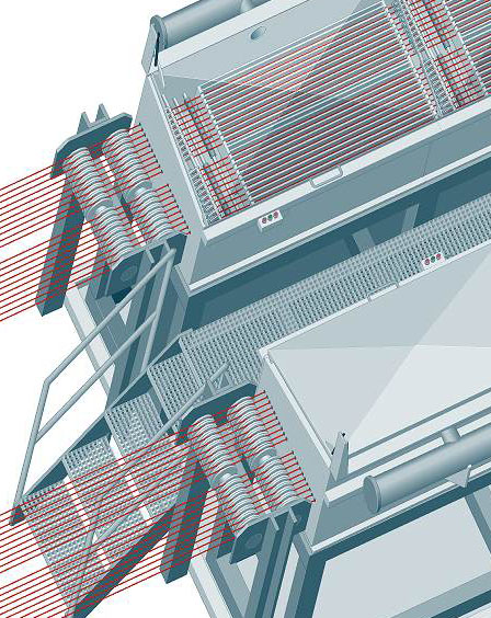 Die schon vor vier Jahren illustrierte und inzwischen mehrfach aktualisierte Drahtveredelungsanlage wird nun auch in einer Version gebaut, in der mehrere Drähte parallel verarbeitet werden. Auf der Fachmesse Wire2004 wird das auf einer Messe-Schautafel beworben, für die ich die neue Anlage illustrierte.